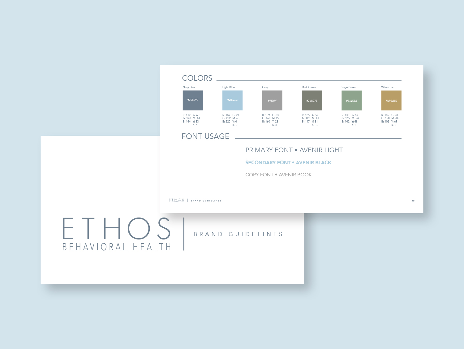 Developed a comprehensive brand guide for Ethos that unified their identity and empowered their team to maintain consistent, on-brand marketing.